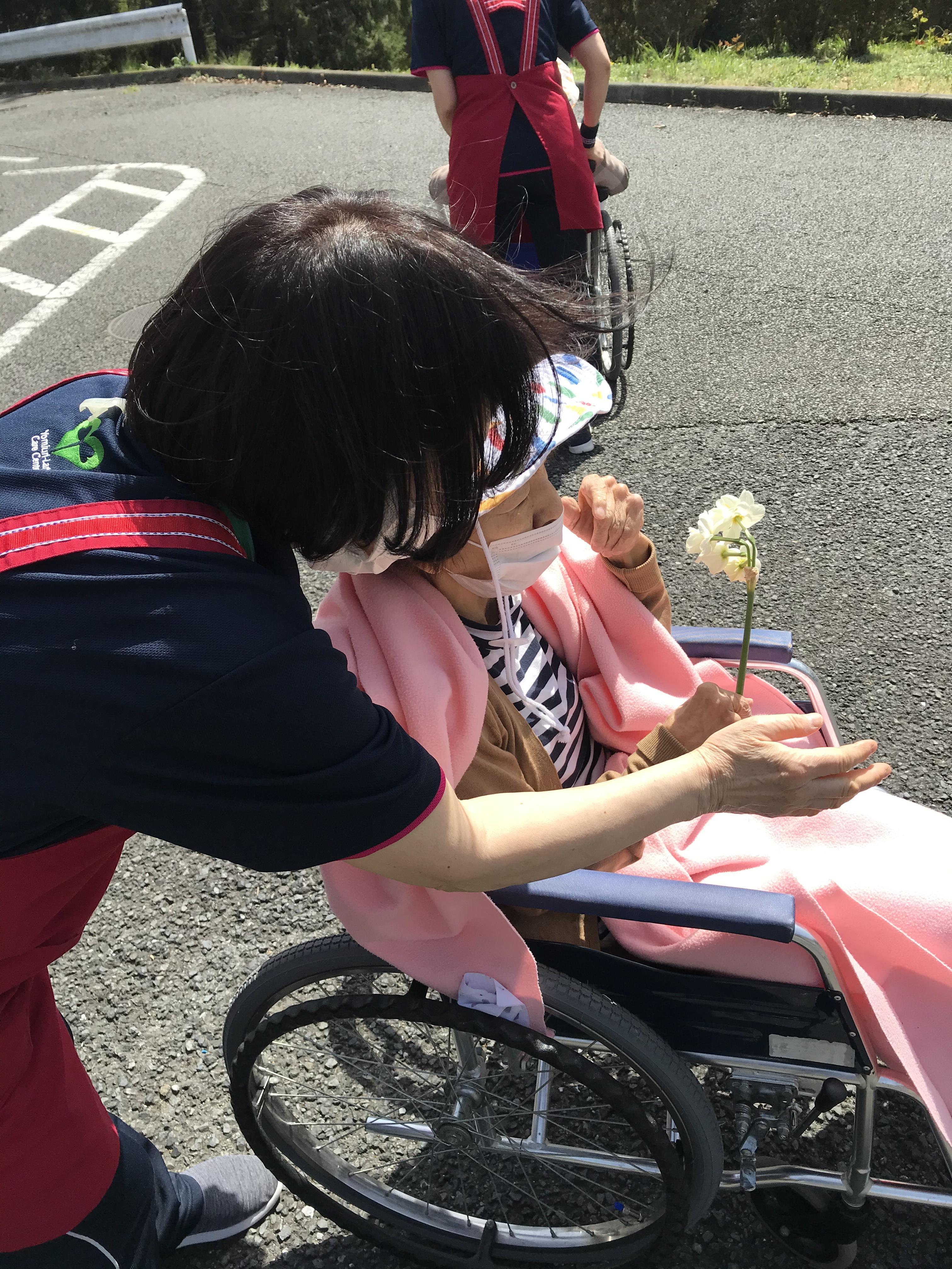 今日は半袖でもいいぐらい朗らかな気候で、車椅子で出かけた皆さんも「一年で一番良い季節ですね(^^)」と喜んでいらっしゃいました。